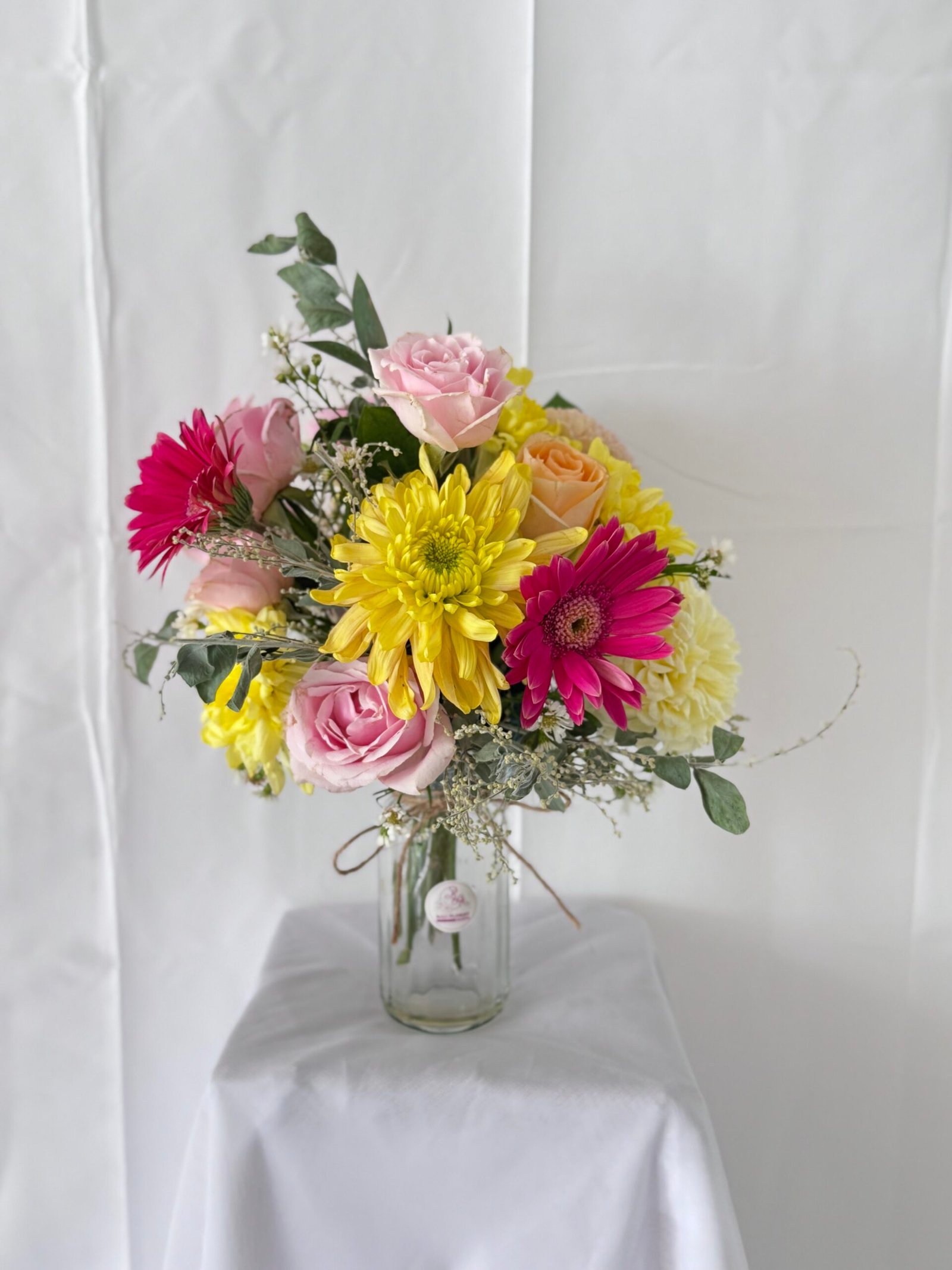 The crystal vase is crafted with precision and designed for durability, ensuring it remains a stunning addition to your home for years to come. The flowers stay fresh for long-lasting beauty that captures attention at every glance.