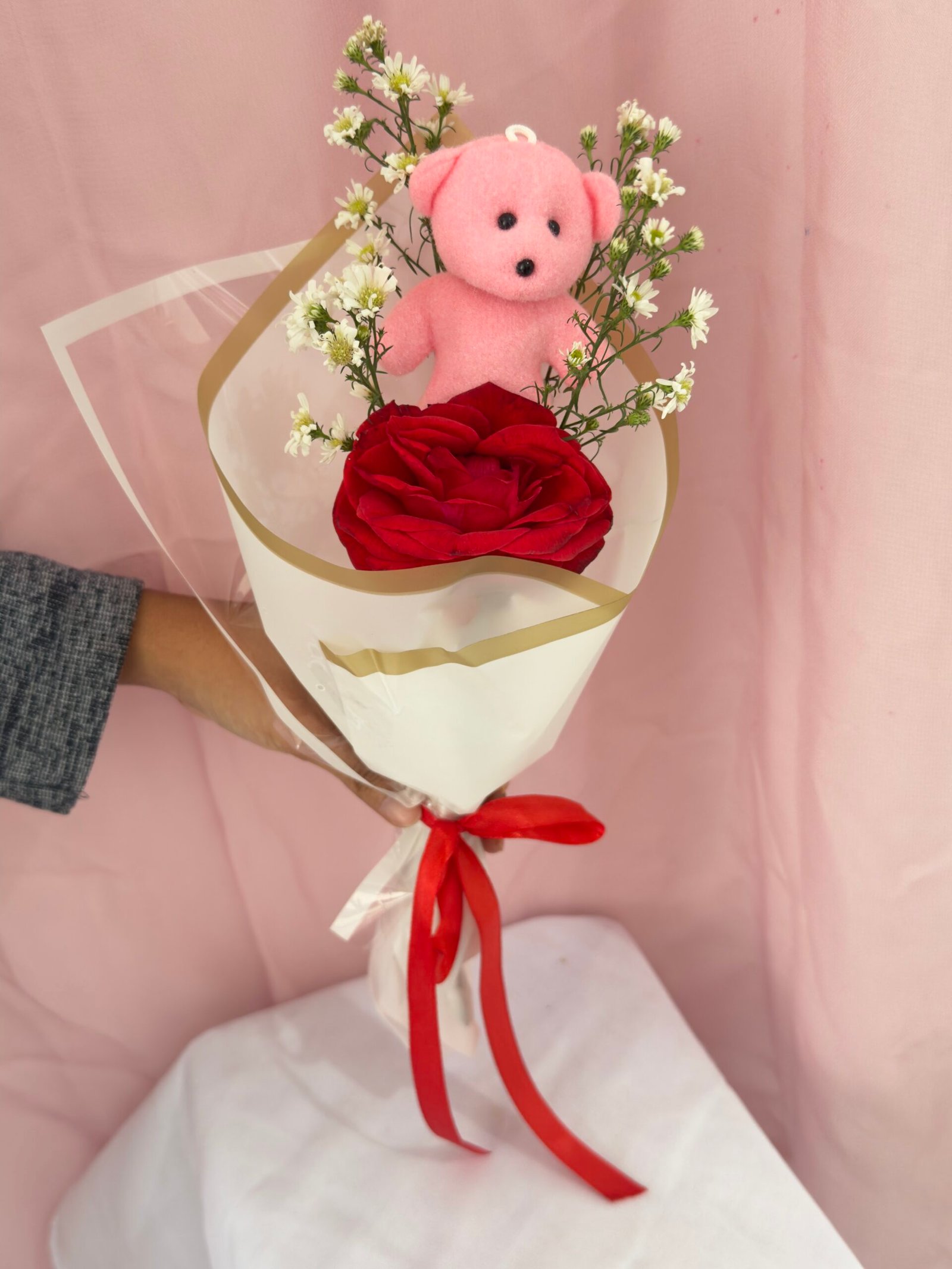 Buket Mawar dengan Boneka Kecil bukan hanya sekadar hadiah biasa, tetapi juga simbol emosi yang mendalam. Setiap elemen dikurasi dengan cinta demi menghadirkan kebahagiaan kepada yang menerimanya. Tidak hanya cantik untuk dilihat, tetapi juga menawarkan kenangan yang abadi.
